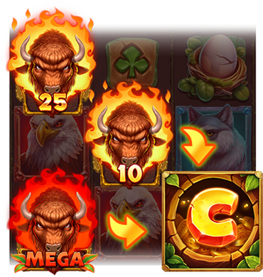 The Collector Symbol will also collect any visible Jackpot Bison Symbols, awarding the respective Jackpot value.