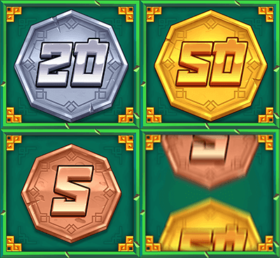 Once the Golden Reveal stacks are present on the reels, the Coin Feature will activate. All Golden Reveal symbols on the reel will reveal Coins ranging in value from 1x to 5000x!