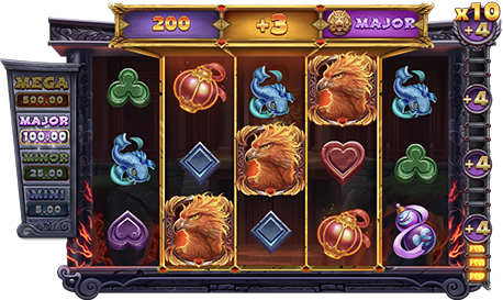 An additional wide single reel (Phoenix reel) is situated above the base reels.
