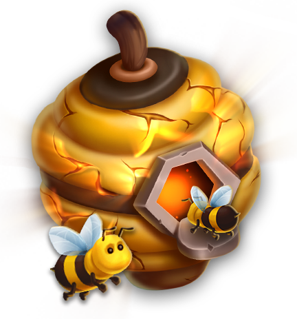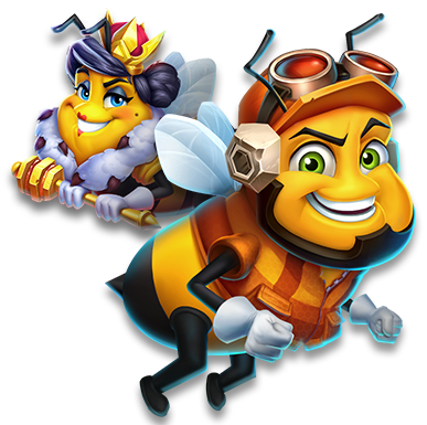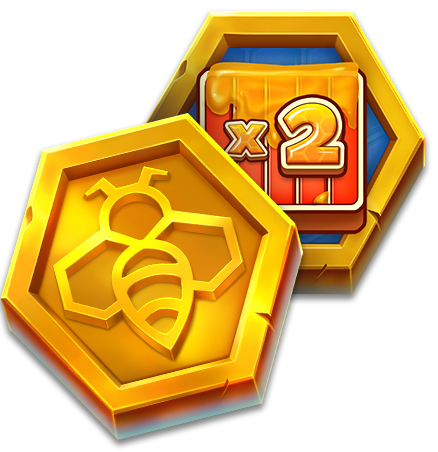 Bee Symbols in the Base Game fill the Hive and leave Wild Honey Symbols. Worker Bees add 1 segment to the Hive meter, Queen Bees add 5.