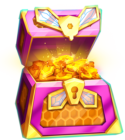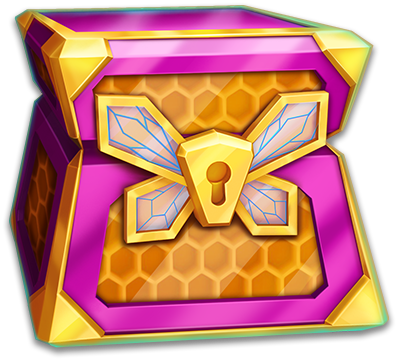 Triggered by Hive explosion or Chest Prize. This feature begins with 10 automatic Free Spins and Reel Multipliers set above each reel (Reel 1 has a 2x Multiplier, Reel 2 has 3x, Reel 4 has 6x and Reel 5 has 8x.)